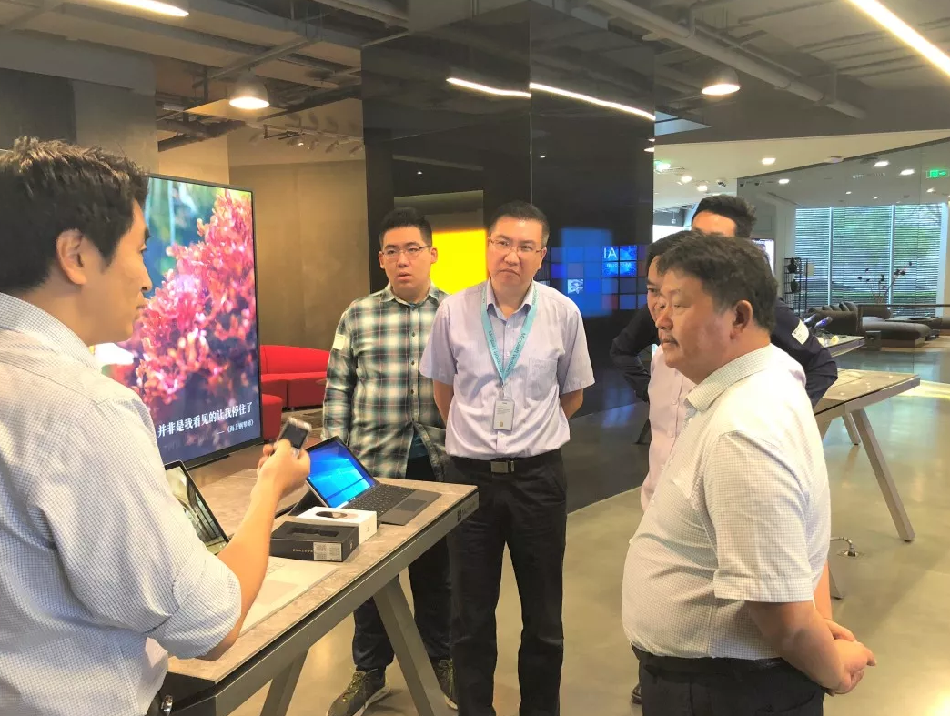 在北京騰沖商會(huì)副會(huì)長(zhǎng)、北京天正和順信息技術(shù)有限責(zé)任公司總經(jīng)理?xiàng)畛傻呐阃拢慰傄恍惺紫葏⒂^了微軟Center One展廳(微軟新視界Microsoft China Center One)。Center One是匯集微軟前瞻愿景與科技展望的創(chuàng)新中心,在這里可以看到微軟對(duì)于各類創(chuàng)新技術(shù)的詮釋和表達(dá),并能夠親身體驗(yàn)到前沿科技如何影響和推動(dòng)未來(lái)生活和工作的變化與轉(zhuǎn)型,Center One負(fù)責(zé)人Carter帶領(lǐng)段總參觀和體驗(yàn)了目前國(guó)內(nèi)人工智能、大數(shù)據(jù)、語(yǔ)音識(shí)別、HoloLens混合現(xiàn)實(shí)技術(shù)的創(chuàng)新成果以及這些技術(shù)在農(nóng)業(yè)、醫(yī)療、旅游、智慧城市、地產(chǎn)、安全生產(chǎn)等領(lǐng)域的應(yīng)用。