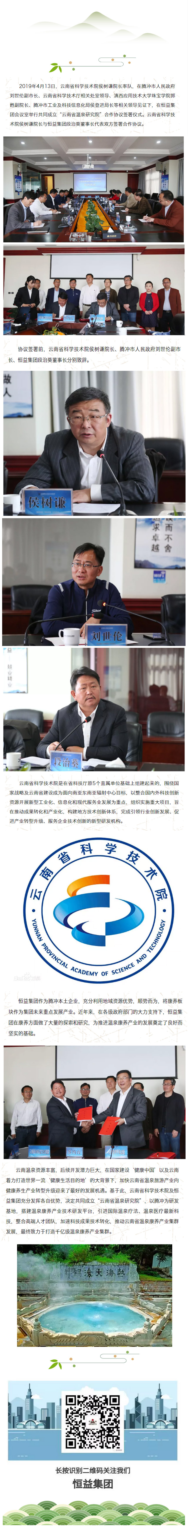 云科院與恒益集團(tuán)簽署共同成立“云南省溫泉研究院”合作協(xié)議 來源: 瀏覽量:8314 日期:2019-04-15 分享到: 上一篇:京東集團(tuán)到訪恒益,達(dá)成農(nóng)牧業(yè)領(lǐng)域合作共識 下一篇:黃必志院長一行蒞臨東山農(nóng)業(yè)調(diào)研,助力恒益肉牛產(chǎn)業(yè)發(fā)展