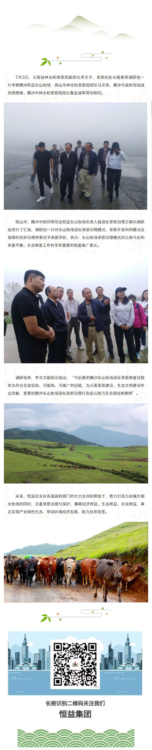 云南省林業(yè)和草原局調(diào)研組一行蒞臨騰沖恒益東山牧場(chǎng)考察 來(lái)源: 瀏覽量:8290 日期:2019-07-04 分享到: 上一篇:恒益集團(tuán)2019年半年度經(jīng)濟(jì)運(yùn)行分析會(huì)隆重召開(kāi) 下一篇:祝賀!恒益東山農(nóng)業(yè)公司又獲殊榮