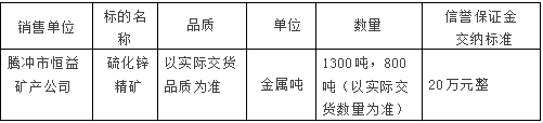 騰沖市恒益礦產(chǎn)品經(jīng)貿(mào)有限責(zé)任公司關(guān)于鋅精礦競(jìng)價(jià)銷售公告(202001)號(hào)