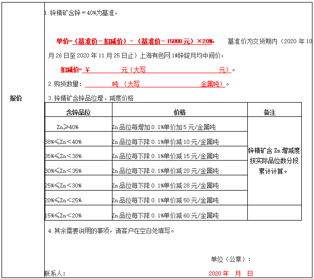 附件:報(bào)價(jià)單、硫化鋅精礦購銷合同