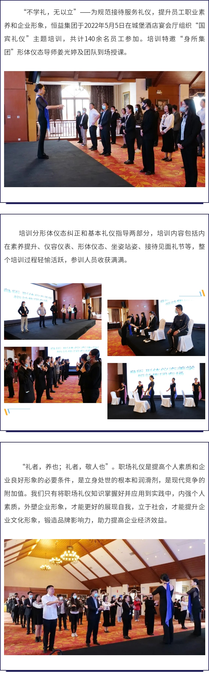 博學(xué)于文,約之以禮——恒益集團(tuán)組織“國賓禮儀”主題專場(chǎng)培訓(xùn) 來源: 瀏覽量:5852 日期:2022-05-07 分享到: 上一篇:保山市騰沖邊境經(jīng)濟(jì)合作區(qū)管理委員會(huì)與云南保山恒益實(shí)業(yè)集團(tuán)簽訂項(xiàng)目合作協(xié)議 下一篇:新時(shí)代,新經(jīng)濟(jì),新機(jī)遇——恒益集團(tuán)首期經(jīng)營管理實(shí)戰(zhàn)培訓(xùn)
