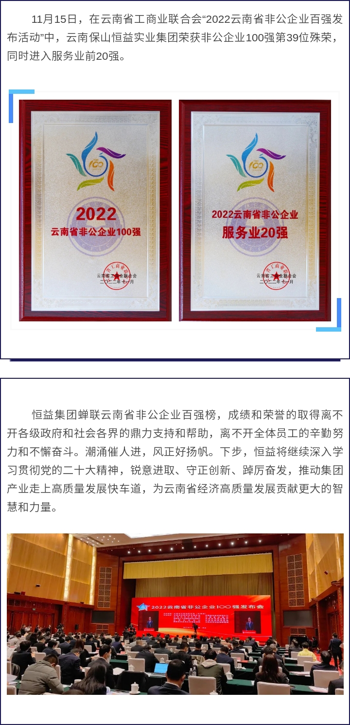喜訊丨恒益集團蟬聯(lián)云南省非公企業(yè)百強榜