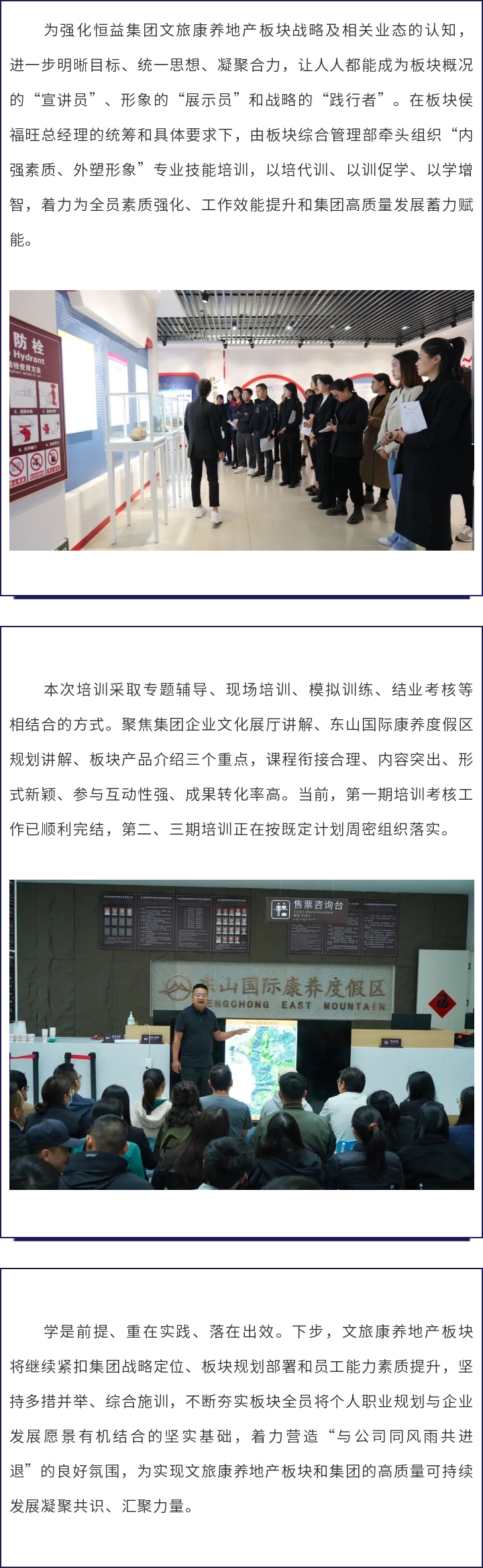 恒益集團文旅康養(yǎng)地產(chǎn)板塊丨以培代訓(xùn) 著力強化素質(zhì) 提升工作效能 來源: 瀏覽量:5134 日期:2023-06-19 分享到: 上一篇:外出考察拓思路 學(xué)習(xí)借鑒促提升 ——恒益集團董事長段治葵帶團隊赴廈門象嶼集團考察學(xué)習(xí) 下一篇:恒益集團組織開展《民法典》合同編暨檔案管理培訓(xùn)