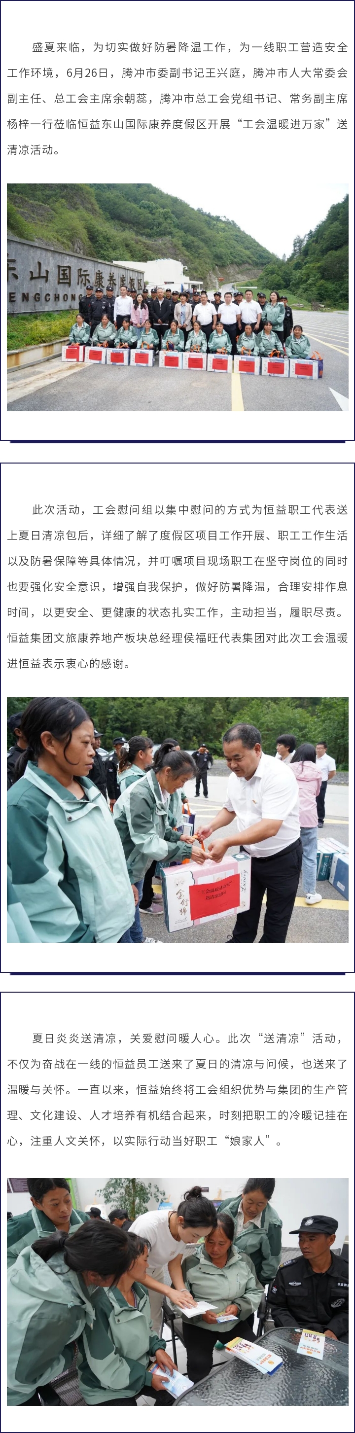 工會溫暖進(jìn)萬家 清涼慰問至恒益 來源: 瀏覽量:4813 日期:2023-06-27 分享到: 上一篇:領(lǐng)航定向 聚力篤行丨恒益集團(tuán)組織召開第二屆董事會第七次會議暨2023年半年度經(jīng)濟(jì)運(yùn)行分析會議 下一篇:騰沖玉文化論壇成功舉辦 跟著故宮博物院文博專家解碼清代宮廷玉器