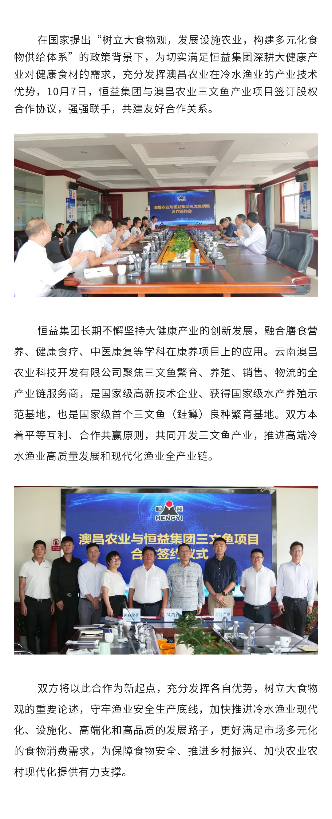 恒益集團(tuán)與澳昌農(nóng)業(yè)就三文魚產(chǎn)業(yè)項(xiàng)目簽訂股權(quán)合作協(xié)議 來源: 瀏覽量:4459 日期:2023-10-08 分享到: 上一篇:快跟我來,帶您去逛邊交會(huì)~ 下一篇:“大健康高質(zhì)量發(fā)展研討會(huì)—醫(yī)康養(yǎng)產(chǎn)業(yè)創(chuàng)新發(fā)展”專家院士研討會(huì)在北京成功舉行