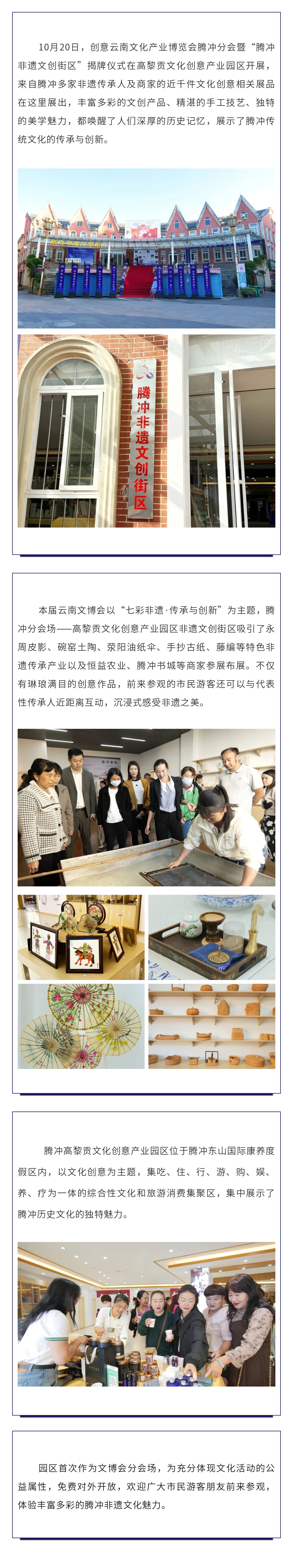 云南文博會(huì),高黎貢文化創(chuàng)意產(chǎn)業(yè)園區(qū)展現(xiàn)騰沖多彩非遺文化 來(lái)源: 瀏覽量:4387 日期:2023-10-20 分享到: 上一篇:保山市綠色生物醫(yī)藥產(chǎn)業(yè)鏈群專(zhuān)班蒞臨恒益農(nóng)業(yè)食品加工園調(diào)研 下一篇:直播預(yù)熱丨文博會(huì)分會(huì)場(chǎng),相約騰沖高黎貢文化創(chuàng)意產(chǎn)業(yè)園區(qū)
