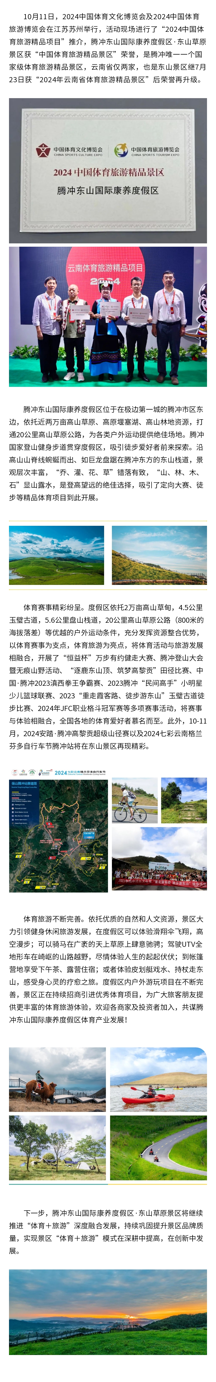 榮譽再升級|騰沖東山國際康養(yǎng)度假區(qū)·東山草原景區(qū)獲“中國體育旅游精品景區(qū)”殊榮 來源: 瀏覽量:3694 日期:2024-10-11 分享到: 上一篇:綠美東山:綠色蛻變,產(chǎn)業(yè)發(fā)展新亮點 下一篇:逐“綠”而行,恒益集團奏響全面綠色轉(zhuǎn)型協(xié)奏曲