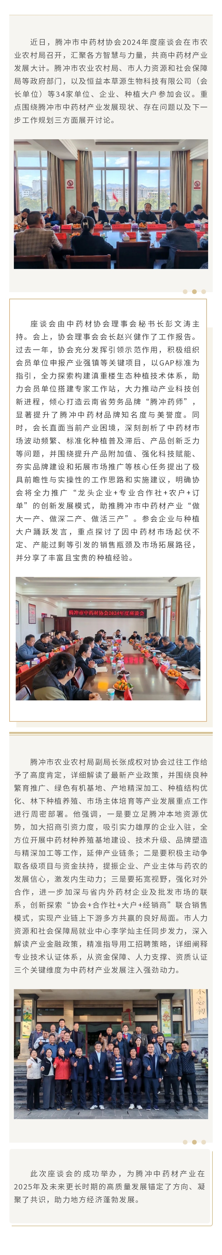 騰沖市中藥材協(xié)會2024年度座談會圓滿召開,共繪產(chǎn)業(yè)發(fā)展新藍圖 來源: 瀏覽量:3263 日期:2025-01-06 分享到: 上一篇:猴橋鎮(zhèn)攜手恒益本草源,共譜中藥材高質量發(fā)展新篇章 下一篇:騰沖科學家論壇·溫泉醫(yī)康養(yǎng)產(chǎn)業(yè)創(chuàng)新發(fā)展論壇成功舉辦,多項簽約及受聘儀式同期舉行