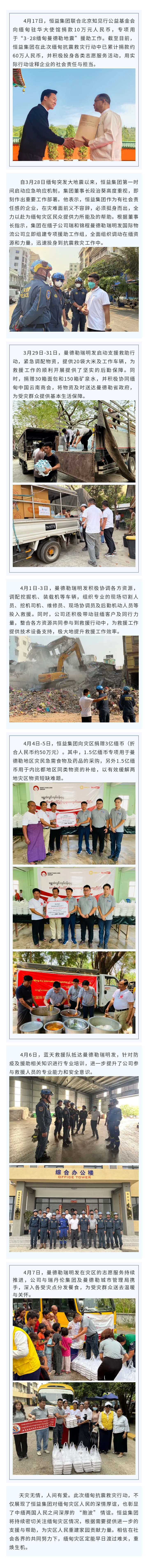 恒益集團(tuán)持續(xù)助力緬甸抗震救災(zāi),彰顯企業(yè)擔(dān)當(dāng) 來(lái)源: 瀏覽量:2541 日期:2025-04-17 分享到: 上一篇:以政策賦能員工 用制度驅(qū)動(dòng)成長(zhǎng) 下一篇:“樂(lè)心”有道:預(yù)防、阻斷和逆轉(zhuǎn)心臟病圓桌對(duì)話即將開(kāi)幕